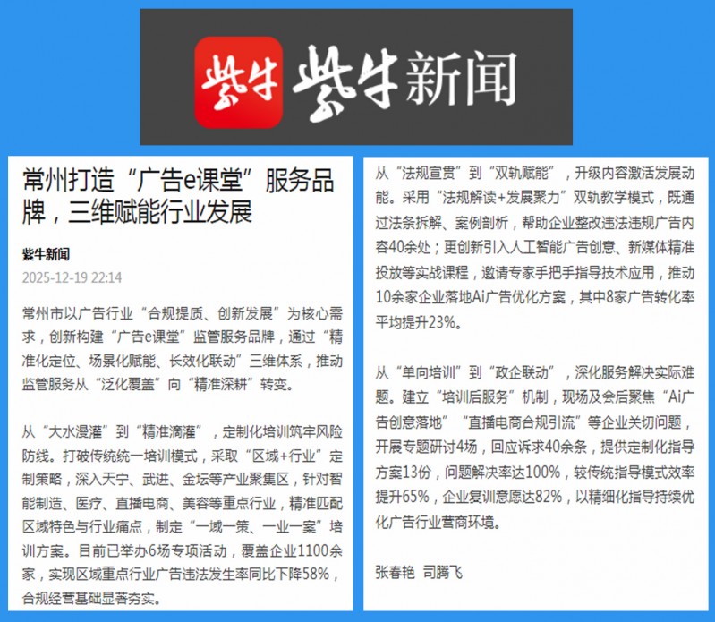 | 扬子晚报·紫牛新闻报道常州“广告e课堂”赋能行业发展情况 |