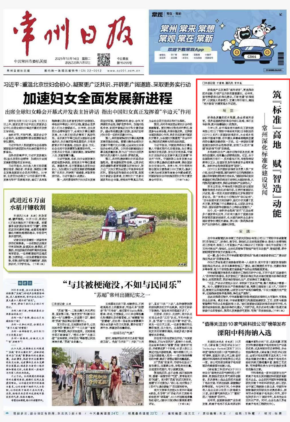 10月14日,常观和《常州日报》以《筑“标准”高地 赋“智造”动能 ——常州深化标准化建设见闻》为题,报道常州标准化建设举措和成效。